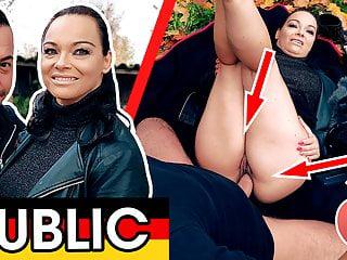 Deutsche dünne Parkplatz Hure veranstaltet im Wald eine Gangbang