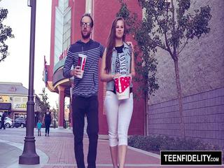 Weißes Mädchen mit großen Titten steht auf schwarze Schwänze