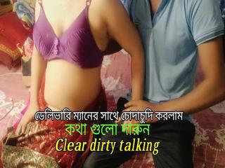 Die schöne Hausfrau bezahlt den Lieferanten mit ihrem Körper
