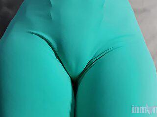 Enge Leggings und eine geschwollene rasierte Muschi – Pussyshow und am Ende kommt der Dildo ins Spiel