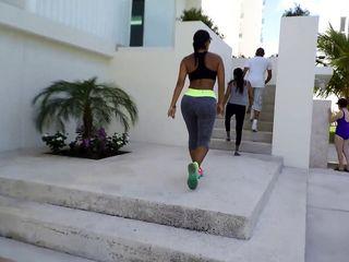 Eine 90er Jahre Sexszene mit einer heißen großen Blondine die auf der Treppe gefickt wird