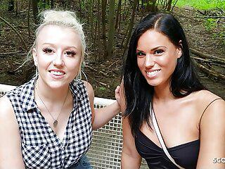 2 echte deutsche Teens verführen Bekanntem in Park zum Dreier
