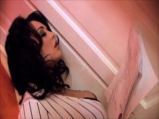Eine schlanke sexy Milf in roten Stockings und schwarzem Spitzenhöschen beim Msturbieren