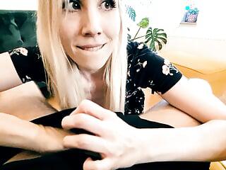 Ich bringe ihn mehrmals zum Orgasmus und reibe sein Sperma auf meine Muschi – Handjob im Catsuit