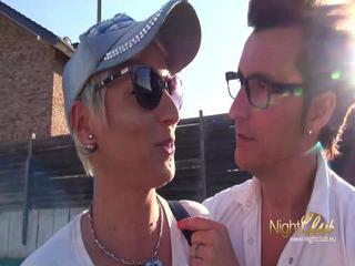 Er fängt es geschickt an, dann geht er gefickt los und greift sich die Blondine im Schoß